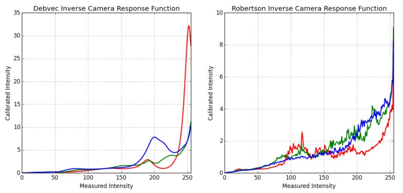 The camera response function (CRF) gives us the connection between the scene radiance to the measured intensity values. The CRF if of great importance in some computer vision algorithms, including HDR algorithms. Here we estimate the inverse camera response function and use it for the HDR merge.