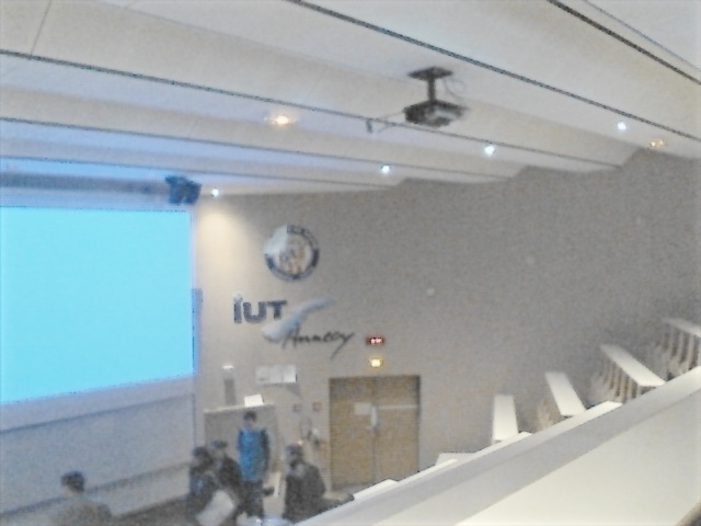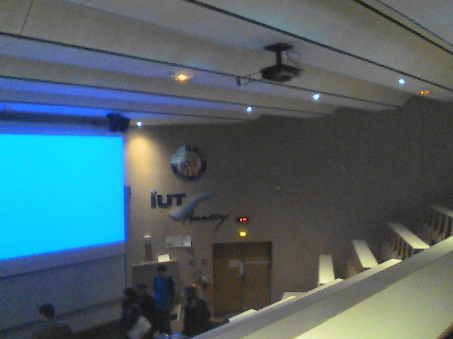 As an illustration, we apply in the following the retina model on a webcam video stream of a dark visual scene. In this visual scene, captured in an amphitheater of the university, some students are moving while talking to the teacher.