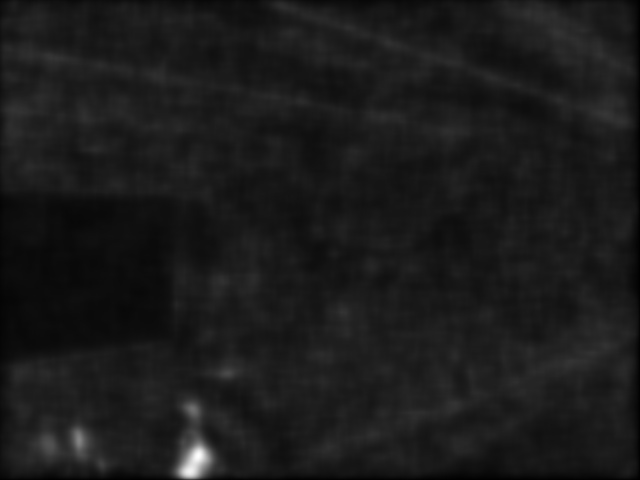 Below is the output of the Magnocellular output of the retina model. Its signals are strong where transient events occur. Here, a student is moving at the bottom of the image thus generating high energy. The remaining of the image is static however, it is corrupted by a strong noise. Here, the retina filters out most of the noise thus generating low false motion area 'alarms'. This channel can be used as a transient/moving areas detector : it would provide relevant information for a low cost segmentation tool that would highlight areas in which an event is occurring.
