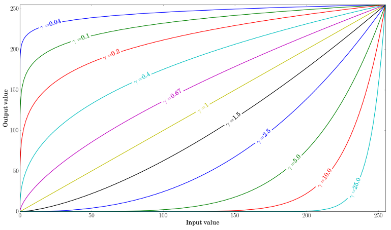 \[O = \left( \frac{I}{255} \right)^{\gamma} \times 255\]
