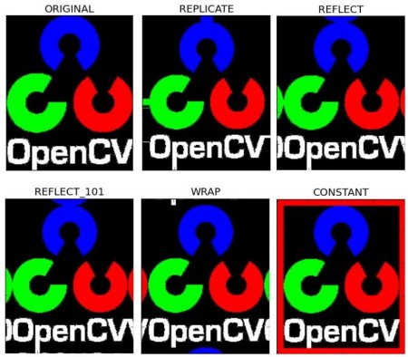 If you want to create a border around an image, something like a photo frame, you can use cv.copyMakeBorder(). But it has more applications for convolution operation, zero padding etc. This function takes following arguments: