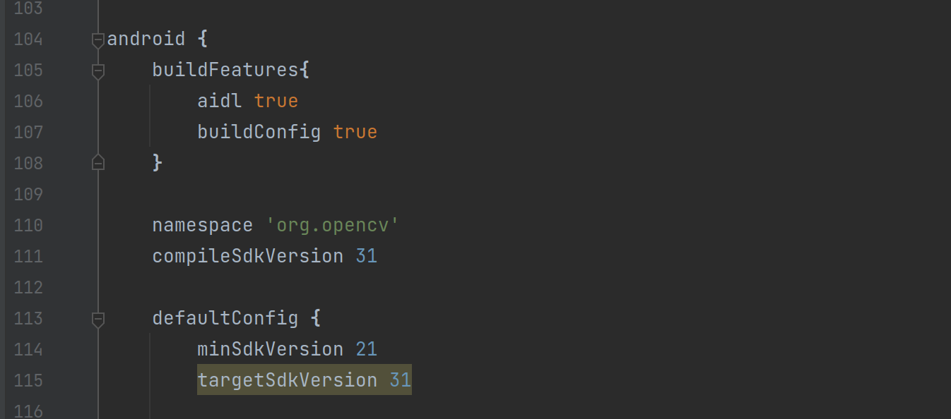 OpenCV-android-sdk/sdk/build.gradle at android -> defaultConfig -> minSdkVersion