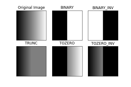 titles = ['Original Image','BINARY','BINARY_INV','TRUNC','TOZERO','TOZERO_INV']