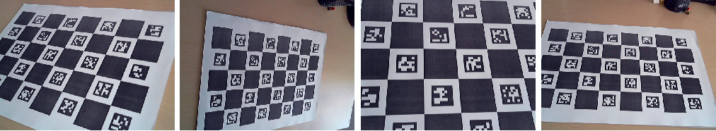 To calibrate using a ChArUco board, it is necessary to detect the board from different viewpoints, in the same way that the standard calibration does with the traditional chessboard pattern. However, due to the benefits of using ChArUco, occlusions and partial views are allowed, and not all the corners need to be visible in all the viewpoints.
