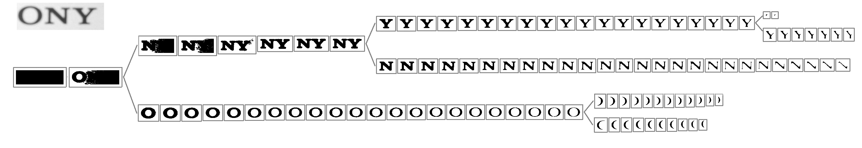 The component tree may contain a huge number of regions even for a very simple image as shown in the previous image. This number can easily reach the order of 1 x 10\^6 regions for an average 1 Megapixel image. In order to efficiently select suitable regions among all the ERs the algorithm make use of a sequential classifier with two differentiated stages.