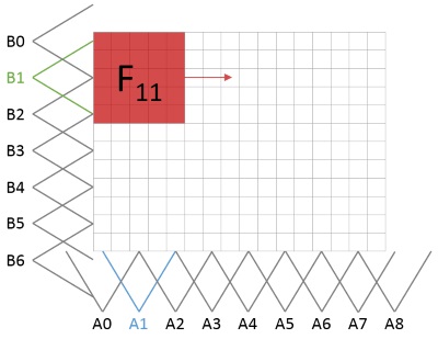 The pixels are processed one by one in a way that appropriate basic functions are found for each of them. It will be exactly four, two in each direction. We need some helper structure in the memory for collecting their values. The values will be used in the nominator of the related fuzzy component. Implementation of this approach uses keyword FL as fast processing (because of more optimizations) and linear basic function.