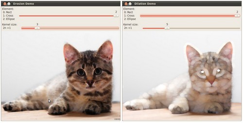 Every time we move any slider, the user's function Erosion or Dilation will be called and it will update the output image based on the current trackbar values.