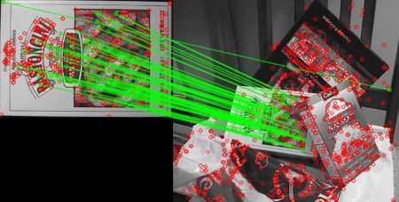 Like we used cv.drawKeypoints() to draw keypoints, cv.drawMatches() helps us to draw the matches. It stacks two images horizontally and draw lines from first image to second image showing best matches. There is also cv.drawMatchesKnn which draws all the k best matches. If k=2, it will draw two match-lines for each keypoint. So we have to pass a mask if we want to selectively draw it.