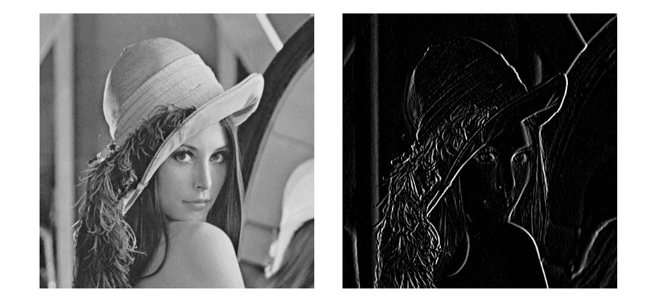 In the tutorial, we used a horizontal gradient filter(as shown in the animation above), which produces an image highlighting the vertical edges.