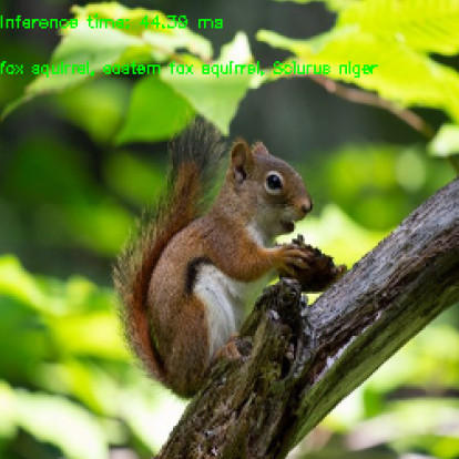 Here we choose the most likely object class. The classId result for our case is 335 - fox squirrel, eastern fox squirrel, Sciurus niger: