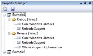 Every project is built separately from the others. Due to this every project has its own rule package. Inside this rule packages are stored all the information the IDE needs to know to build your project. For any application there are at least two build modes: a Release and a Debug one. The Debug has many features that exist so you can find and resolve easier bugs inside your application. In contrast the Release is an optimized version, where the goal is to make the application run as fast as possible or to be as small as possible. You may figure that these modes also require different rules to use during build. Therefore, there exist different rule packages for each of your build modes. These rule packages are called inside the IDE as project properties and you can view and modify them by using the Property Manager. You can bring this up with View –> Property Pages (For Visual Studio 2013 onwards, go to View –> Other Windows –> Property Manager). Expand it and you can see the existing rule packages (called Property Sheets).